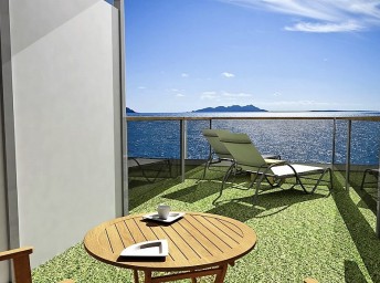 "360° Waterfront boardwalk" – promenáda okolo celej lode, ktorej súčasťou je prechádzka cez priehľadnú podlahu pre ešte väčší zážitok z plavby.