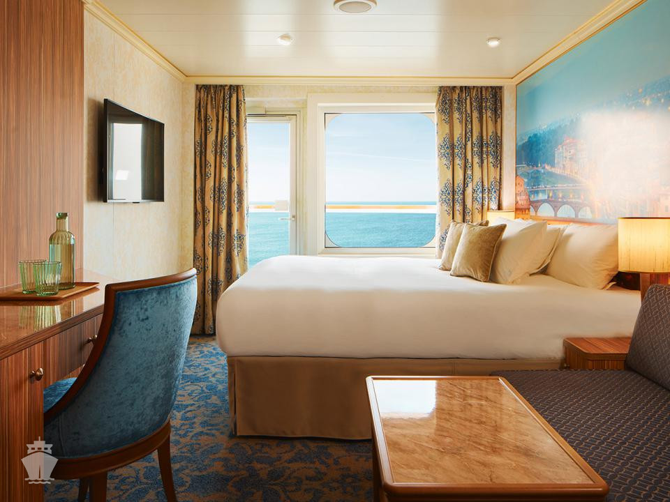 Kajuty sú navrhnuté pre maximálny komfort, balkón je ešte širší ako štandardný balkón, vďaka čomu sa získa ďalší vonkajší priestor.