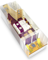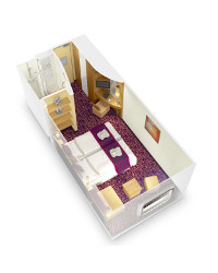 Vo všetkých kajutách sa nachádza regulovateľná klimatizácia, oddelené postele spojiteľné do jednej dvojitej, safe, kúpeľňa so sprchou, sušič na vlasy, telefón, Tv s plochou obrazovkou.
