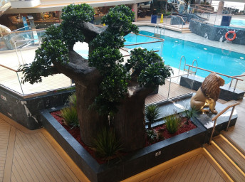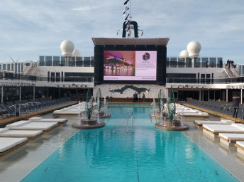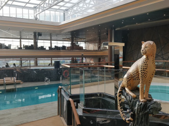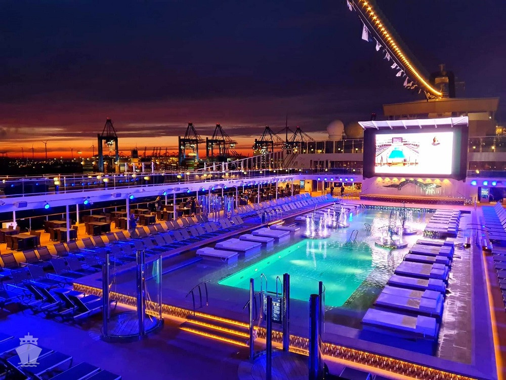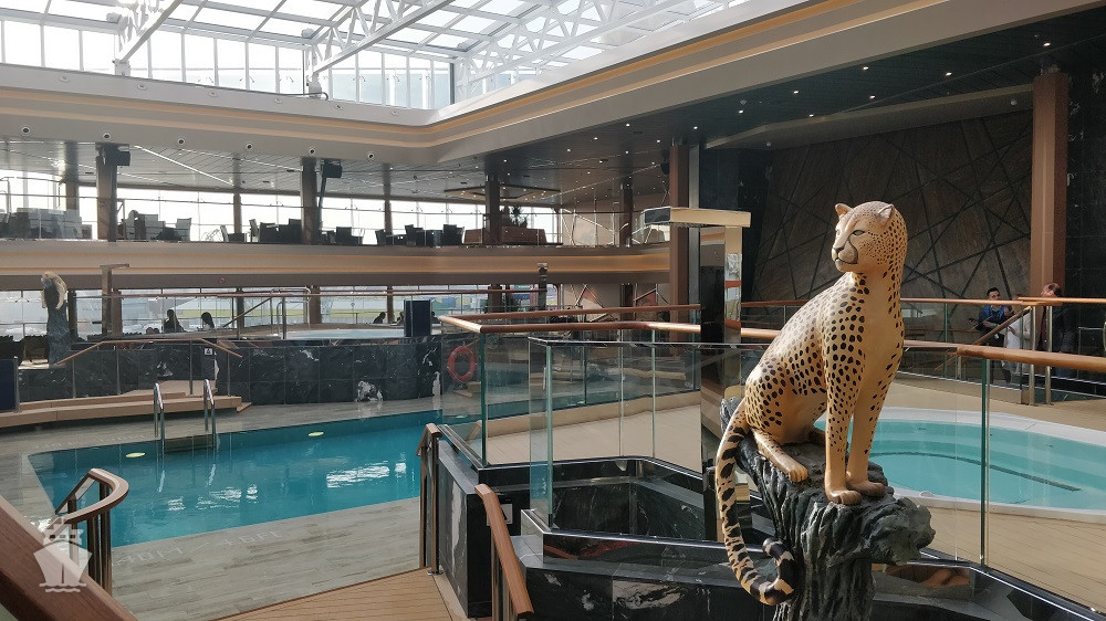 - 4 bazény vrátane 25 m bazénu Atmosphere so špeciálnym nočným osvetlením, vnútorného 10 m Bamboo a Horizon bazénu, ktorý sa v noci mení na tanečnú zónu. Vírivky.
