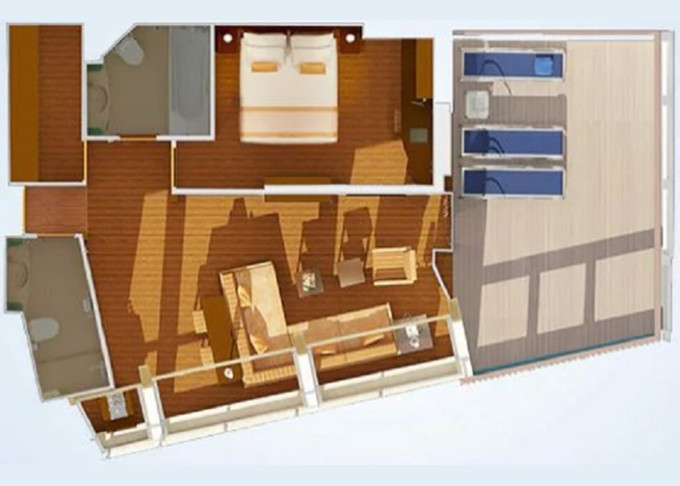 OS - Ocean Suite 26 m²/ balkón 6 m². 7. paluba vpredu, stred. Max 4 osoby. Výhody Suite. | 3 506 € 1 753 € za osobu | ||