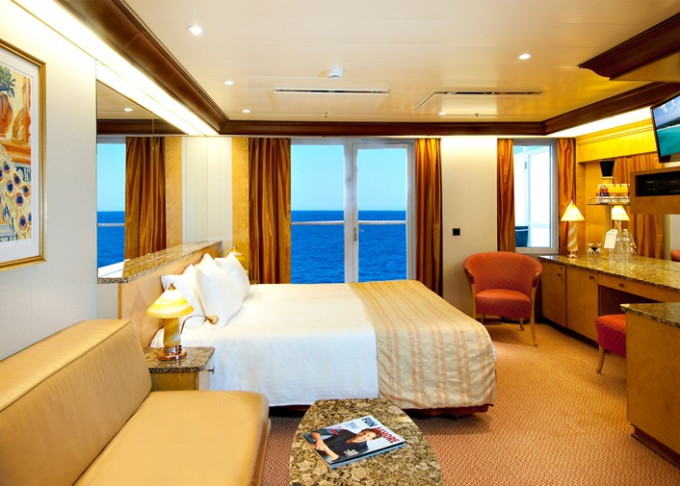 OS - Ocean Suite 25 m² + balkón 8 m². 5. až 8. paluba vzadu. Výhody Suite. | 1 974 € 987 € za osobu |