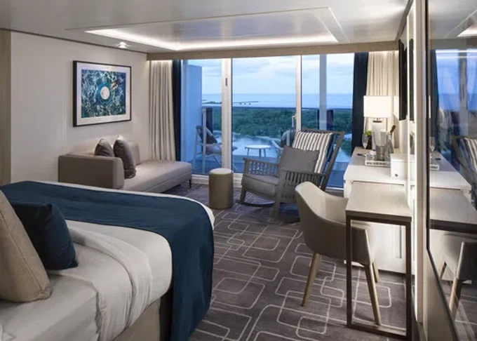 IC - Iconic Suite 176 m² + terasa s vírivkou 64 m². 2 spálne, 2 kúpeľne (1 s vírivkou).12. paluba. Max 6 osôb. Výhody Retreat Suite + Icon Suite extra: Dizajn: Kelly Hoppen. Používanie fitness bicyklov Peloton® v kajute, In-suite Personal Retreat Host's komora, obliečky Celebrity eXhale™ s kašmírovým King matracom, elektronické ovládanie zariadení v miestnosti pomocou dotykovej obrazovky 109 442 € 109 442 € za osobu