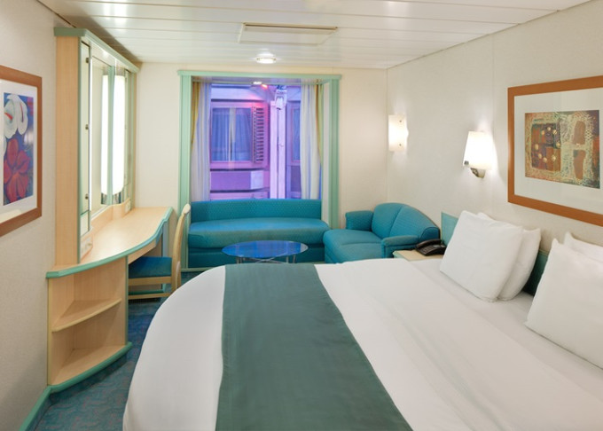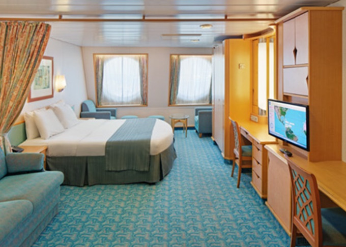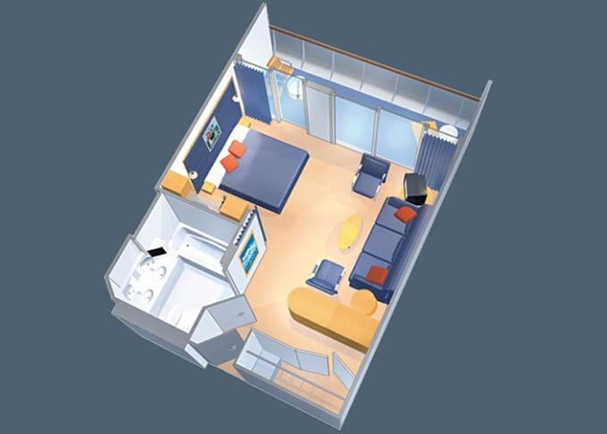 VP - Ocean View Panoramic Suite (bez balkónu) 37 m². Panoramatické neotvárateľné okná.12. paluba - vpredu. Max 6 osôb. Výhody Royal Suite Class. 4 978 € 2 489 € za osobu