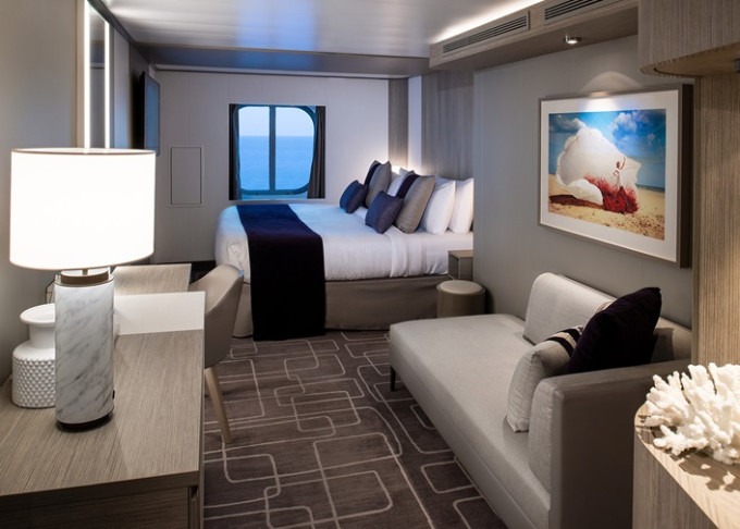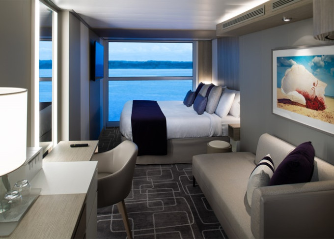 - Kajuty sú umiestnené v blízkosti lodného Spa. K ich vybaveniu patrí posilnený systém vzdušnej filtrácie, posteľ Queen-Size (v kategóriách Edge King-Size), veľké zasúvacie sklenené dvere, exkluzívne posteľné prádlo eXhale®, veľkorysé skladovacie priestory.