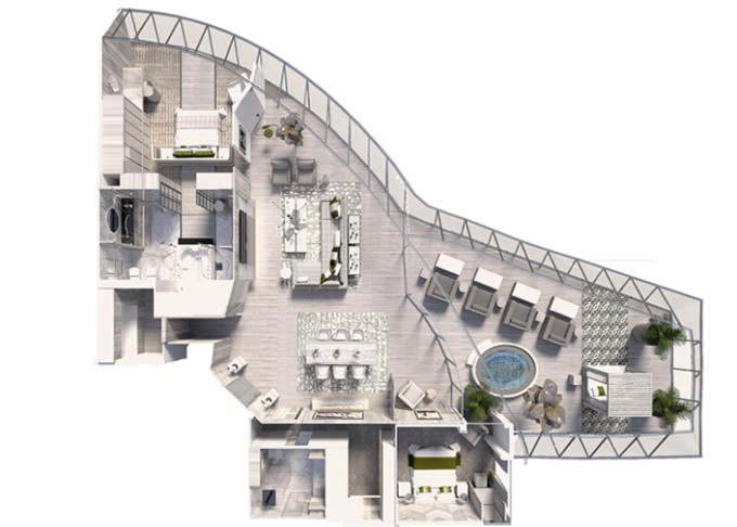IC - Iconic Suite s balkónom 176 m² + terasa s vírivkou 64 m². 2 spálne, 2 kúpeľne (1 s vírivkou). 12. paluba. Max 6 osôb. Výhody Suite. | 32 532 € 8 133 € za osobu |