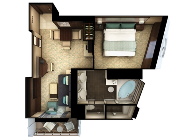 | HD - The Haven Deluxe Suite 50 m² / balkón 7 m². Vírivka. 16. paluba - vpredu. Max 4 osoby. Výhody The Haven. | 8 974 € 4 487 € za osobu |