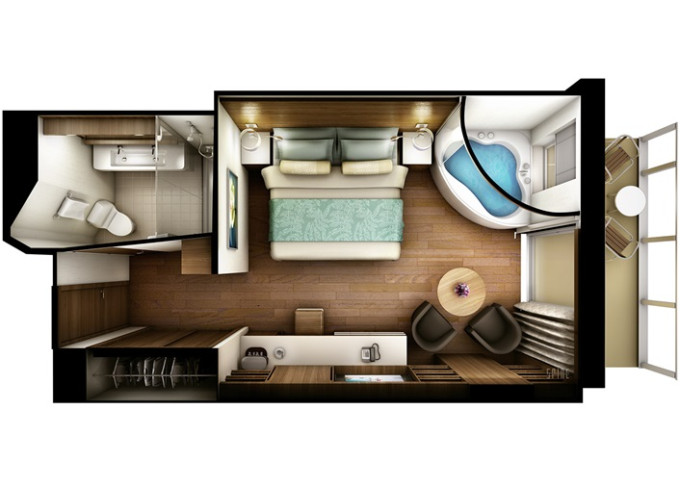 | H6 - The Haven Family Villa - 2 spálne 50 m² / balkón 4 m².17,18. paluba - vpredu. Max 6 osôb. Výhody The Haven. | 15 748 € 7 874 € za osobu |