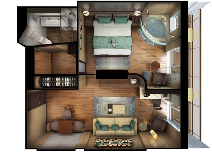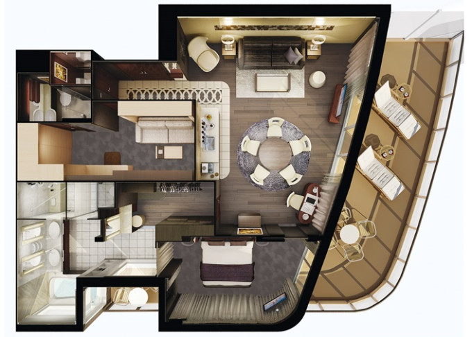 | H2 - The Haven Deluxe Owner's Suite 121 m² / balkón 36 m². 17,18. paluba vpredu. Max 6 osôb. Výhody The Haven. | 20 424 € 10 212 € za osobu |