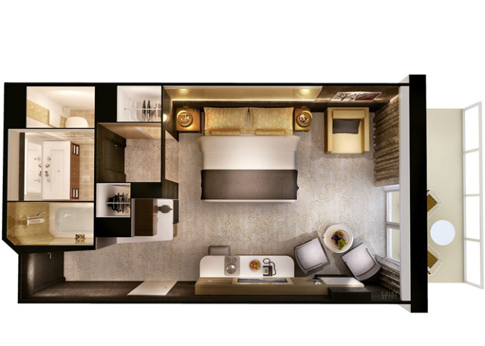 | T1 - Vnútorná kajuta Studio Single 9 m². 10. až 12. paluba - vpredu. Max 1 osoba. | 3 486 € 1 743 € za osobu | ||
