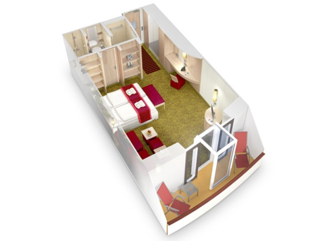 BA - Kajuta s balkónom PREMIUM od 17,5 m² / balkón od 3 m². Max 4 osoby. Cenový model Premium. | 8 310 € 4 155 € za osobu |