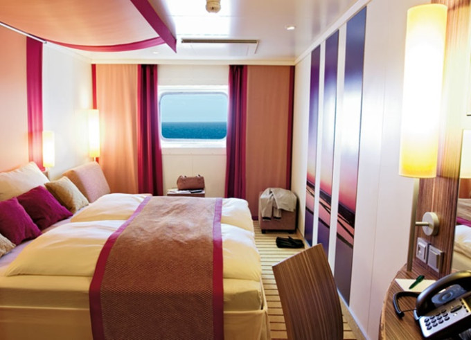 CA - Vonkajšia kajuta PREMIUM / obmedzený výhľad 14-16,5 m². Neotvárateľné okno / obmedzený výhľad. 6. paluba. Max 2 osoby. Cenový model Premium. | 1 580 € 790 € za osobu |