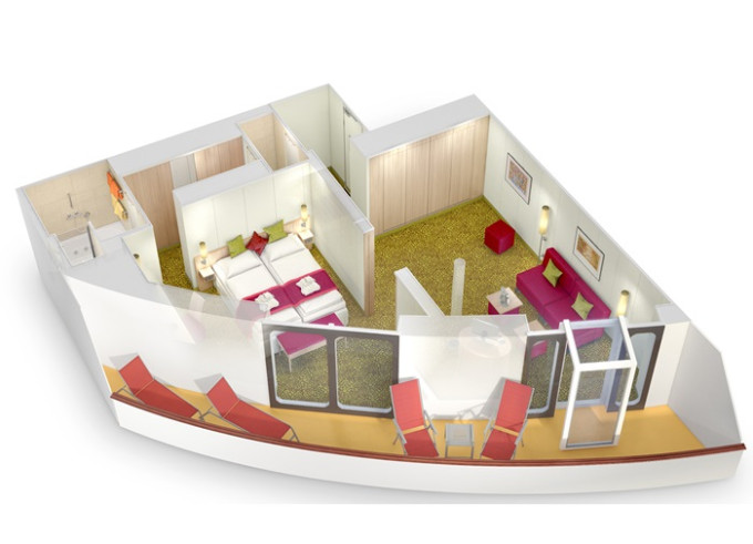 SA - Suite Deluxe PREMIUM od 56 m² (vrátane terasy od 12 m²). 6,8. paluba. Max 5 osôb. Cenový model Premium + výhody Suite. | 4 480 € 2 240 € za osobu |