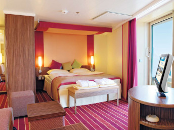SD - Junior Suite PREMIUM od 24 m² + balkón 10 m². 7,8,9. paluba. Max 4 osoby. Cenový model Premium + výhody Junior Suite. | 2 920 € 1 460 € za osobu | ||