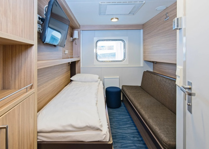 L2 - Vonkajšia kajuta Polar s obló 11 m². Neotvárateľné obló (môže byť obmedzený výhľad). Oddelené postele, Tv. 2, 3. paluba. Max 2 osoby. | 3 950 € 1 975 € za osobu | ||