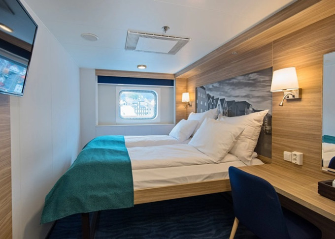O2D - Vonkajšia kajuta Polar Neotvárateľné okno. Manželská posteľ. 3. paluba. Max 2 osoby. | 4 726 € 2 363 € za osobu | ||