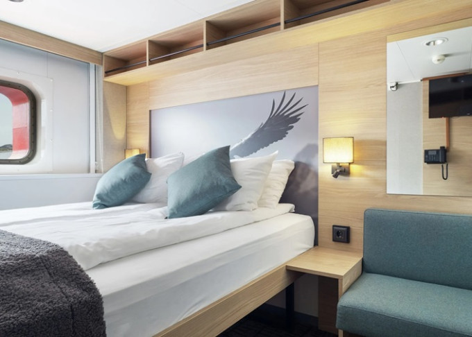 P2D - Vonkajšia kajuta Arctic Superior 11 m². Neotvárateľné okno. Manželská posteľ, Tv, varná kanvica. 5. paluba. Max 2 osoby. | 5 440 € 2 720 € za osobu | ||