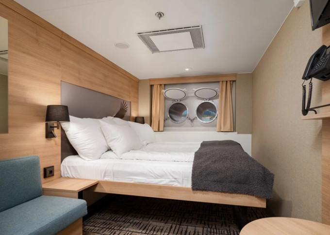 | U2D - Vonkajšia kajuta Arctic Superior 10 m². Neotvárateľné okno. Manželská posteľ, Tv, varná kanvica. 6. paluba. Max 2 osoby. | 5 338 € 2 669 € za osobu | ||