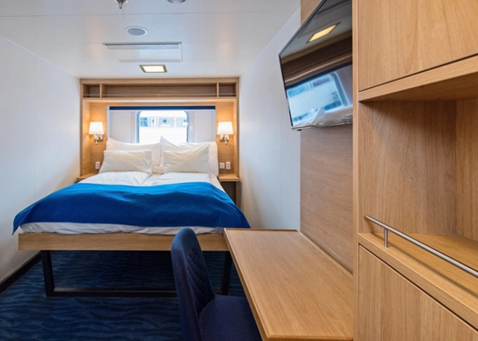 | P2D - Vonkajšia kajuta Arctic Superior 10 m². Neotvárateľné okno. Manželská posteľ, Tv, varná kanvica. 5. paluba. Max 2 osoby. | 4 798 € 2 399 € za osobu | ||