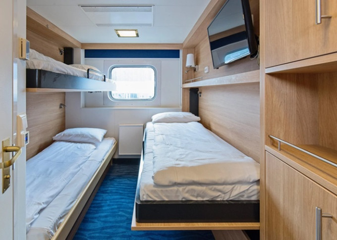 | N3 - Vonkajšia kajuta Polar 10 m². Neotvárateľné okno. Oddelené postele + horné lôžko, Tv. 3. paluba. Max 3 osoby. | 4 098 € 2 049 € za osobu | ||