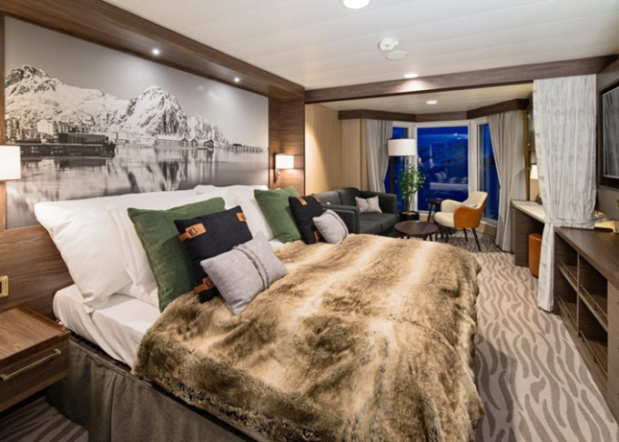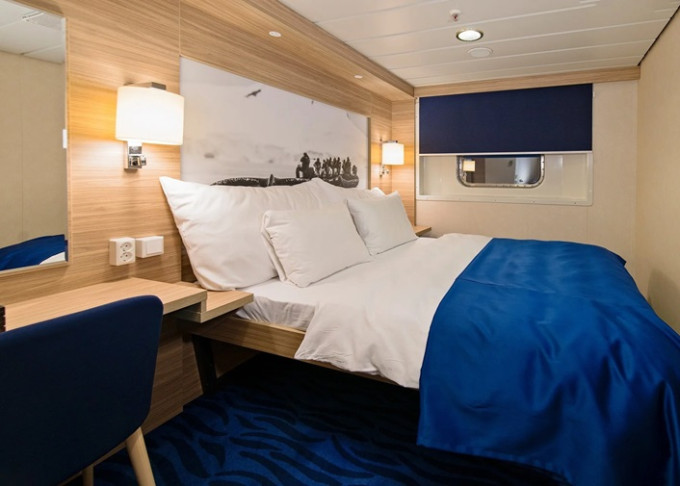 P2D - Vonkajšia kajuta Arctic Superior 8-13 m². Neotvárateľné okno (môže byť limitovaný výhľad). Manželská posteľ, Tv, varná kanvica. 5. paluba. Max 2 osoby. 5 174 € 2 587 € za osobu
