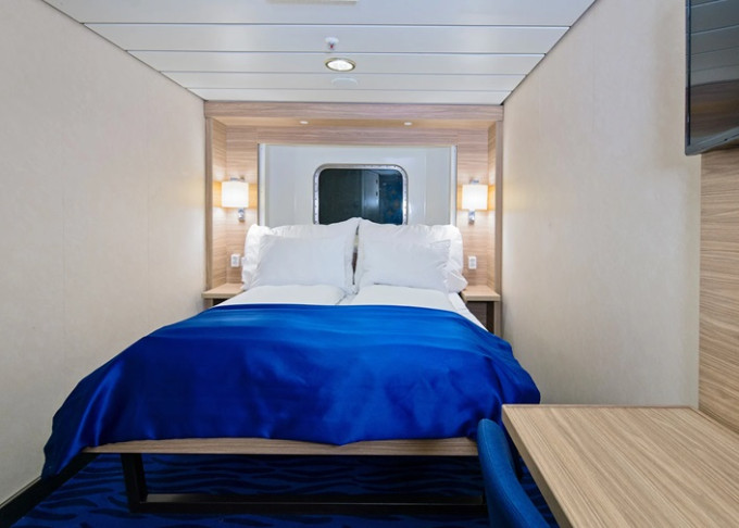 Q4 - Expedition Mini Suite 15-20 m². Neotvárateľné okno. Tv, župany, papuče, deka, minibar, varná kanvica, WiFi. 6. paluba. Max 4 osoby. Výhody Suite. 7 788 € 3 894 € za osobu