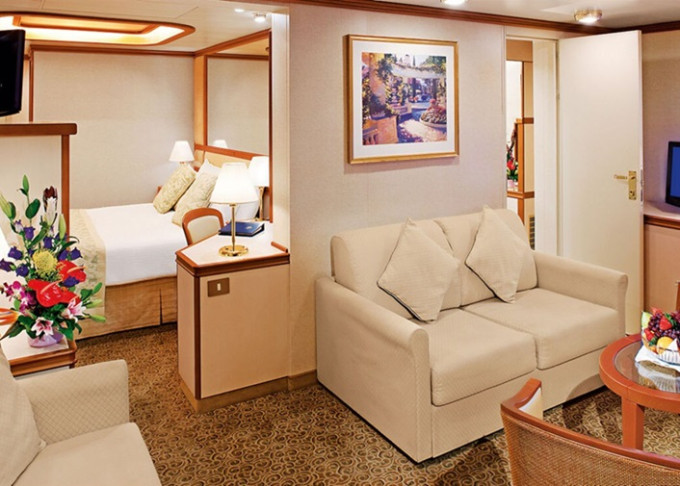 S6 - Vista Suite s balkónom 45 m² (vrátane balkóna). Max 3-4 osoby (gauč + horné lôžko). Výhody Suite. 10 412 € 5 206 € za osobu