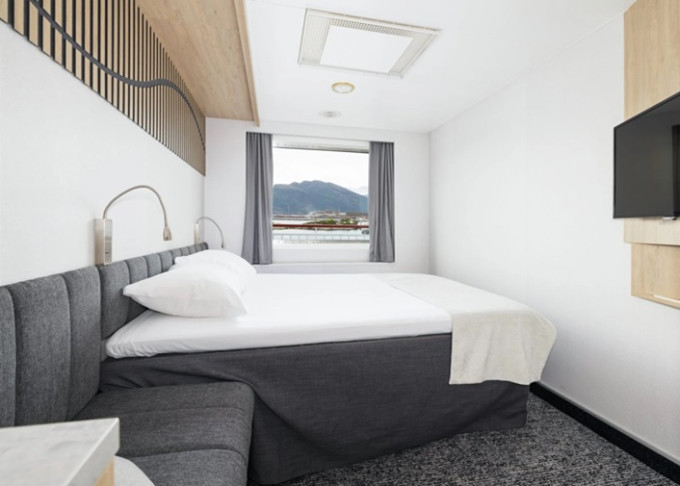 P2 - Vonkajšia kajuta Arctic Superior 10-11 m². Neotvárateľné okno (môže byť obmedzený výhľad). Oddeliteľná manželská posteľ. Tv, varná kanvica. 5. paluba. Max 2 osoby. | 10 504 € 5 252 € za osobu | ||