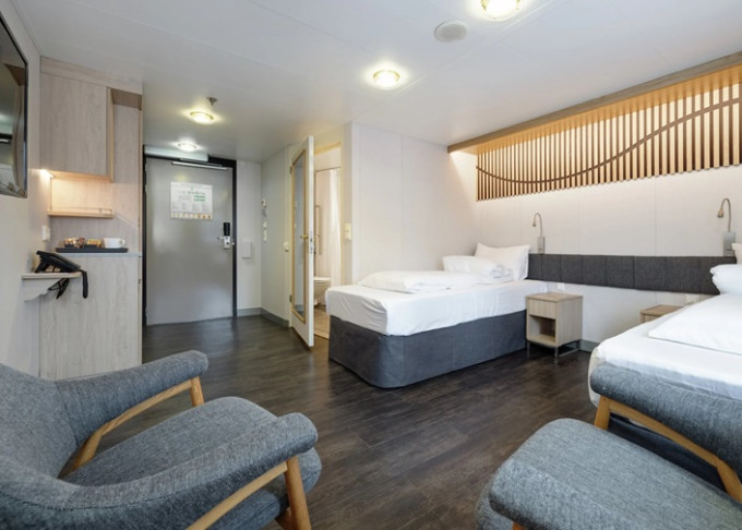 - Expedition Mini suite Q2: 16 - 19 m². Neotvárateľné okno. Jednoizbový apartmán na 5. palube, max obsadenosť 2 osoby, s TV. Niektoré kabíny Q2 majú oddelené postele.