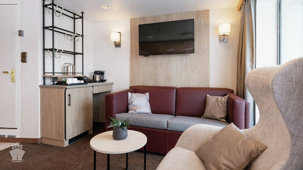 - Pri prestavbe v 2020 boli všetky kajuty kompletne renovované a modernizované. Veľkorysé použitie prírodných škandinávskych materiálov, ako vlna, borovica, breza, dub a žula, do kajút vnieslo autentický prírodný pocit.