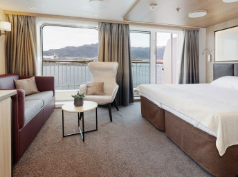 MG - Expedition Grand Suite s balkónom 25 -29 m². Balkón alebo francúzsky balkón. Manželská posteľ, Tv, safe, župany a papuče, kávovar a varná kanvica, minibar. 6, 8. paluba. Max 2 osoby. Výhody Suite. | 22 174 € 11 087 € za osobu |