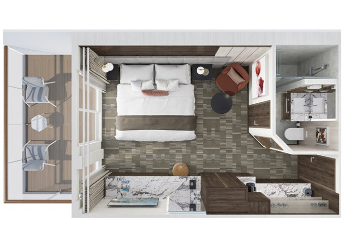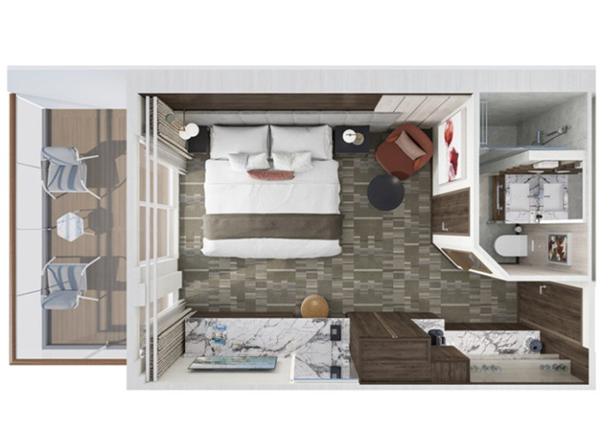 BC - Kajuta s balkónom od 17 m² / balkón od 3 m². 8,9. paluba. Max 3 osoby. 3 916 € 1 958 € za osobu