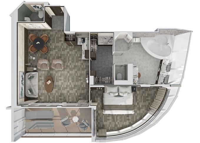 H2 - The Haven Deluxe Owner's Suite 79 m² / balkón 11 m². 16,17. paluba - vpredu, stred. Max 4 osoby. Výhody The Haven. 12 380 € 6 190 € za osobu
