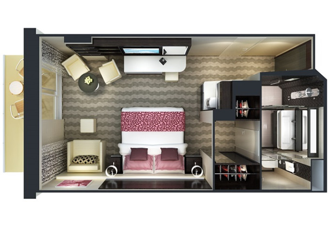 HI - The Haven Penthouse Suite 28 m² / balkón 5 m². 14. paluba - vpredu. Max 2 osoby. Výhody The Haven. | 3 418 € 1 709 € za osobu | ||