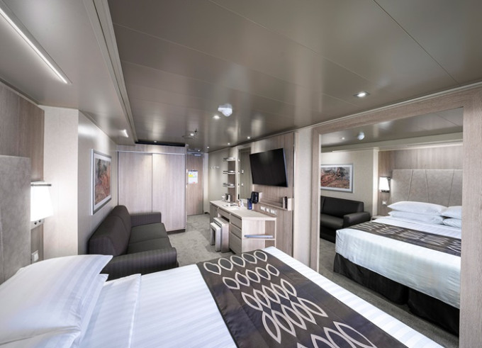 YCP - Yacht Club Grand Suite od 25 m² + balkón od 8 m². Spálňa s predelenou obývacou časťou, šatník. Max 5 osôb. 16-19. paluba. Cenový model MSC Yacht Club. | 3 090 € 1 545 € za osobu | ||