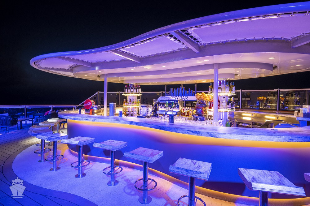The Infinity Aft Pool na zadku 8. paluby - nekonečný bazén dosahujúci až na koniec zadnej paluby, so sklenenou stenou ponúkajúce neprerušovaný výhľad na oceán. Je jedným z najväčších plávajúcich nekonečných bazénov a ponúka rôzne hĺbky a lehátka zapustená do vody.