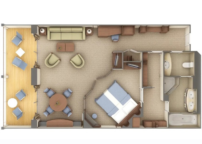 SV - Superior Veranda Suite 26 m² + 6 m² balkón.5. až 8. paluba. Max 3 osoby. | 26 000 € 13 000 € za osobu |