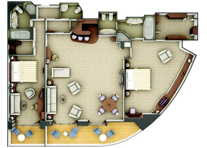 O2 - Owner's Suite 2 107 m² + 20 m² balkóny. Owners Suite O1 spojená s Vista Suite. 7. paluba stred. Max 5 osôb. | 146 700 € 48 900 € za osobu |