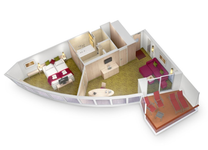 SA - Suite Deluxe PREMIUM od 56 m² / balkón od 12 m². Max 5 osôb. Cenový model Premium + výhody Suite. | 7 210 € 3 605 € za osobu |