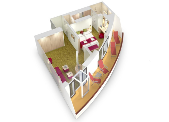 BP - Kajuta s balkónom Panorama PREMIUM 21,5 m² / balkón 4,5 m². Max 3 osoby. Cenový model Premium + výhody Suite. | 4 560 € 2 280 € za osobu |
