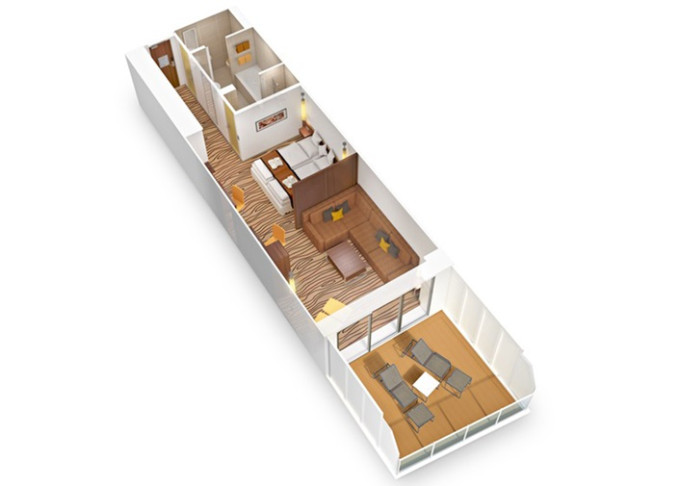 SA - Suite Deluxe PREMIUM 43 m² / 72 m² balkón. 12. paluba. Max 4 osoby. Cenový model Premium + výhody Suite. | 7 140 € 3 570 € za osobu |