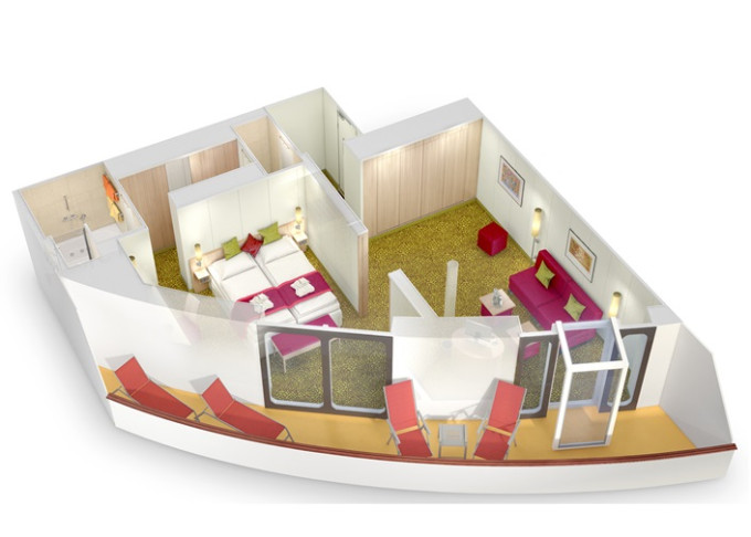 JA - Junior Suite PREMIUM od 32 m² + balkón od 12 m². 8,9. paluba. Max 4 osoby. Cenový model Premium + výhody Junior Suite. | 4 960 € 2 480 € za osobu | ||