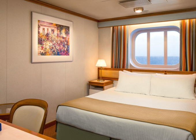 OZ - Vonkajšia kajuta / obmedzený výhľad 17 m². Neotvárateľné okno s obmedzeným výhľadom. Max 2 osoby. 10 510 € 5 255 € za osobu