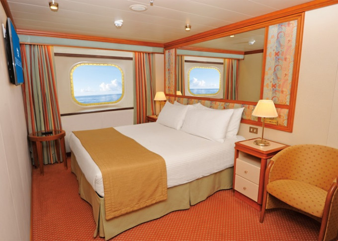 OV - Vonkajšia kajuta / obmedzený výhľad 17 m². Neotvárateľné okno s obmedzeným výhľadom. Max 2-4 osoby (1-2 horné lôžka). 13 328 € 6 664 € za osobu