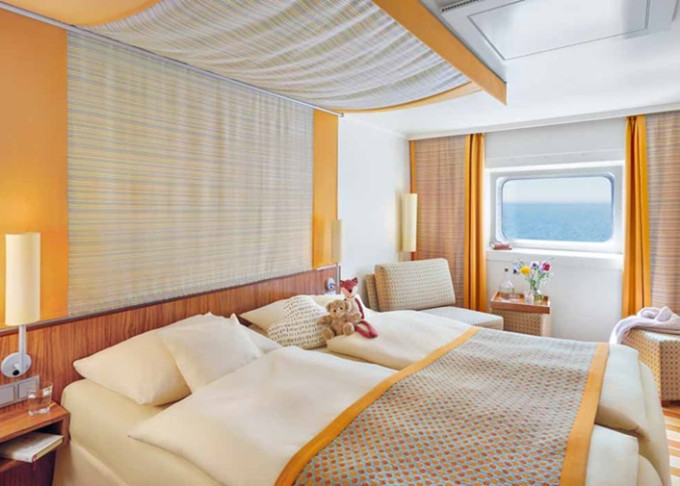 | CA - Vonkajšia kajuta PREMIUM / obmedzený výhľad 14-16,5 m². Neotvárateľné okno / obmedzený výhľad. 6. paluba. Max 2 osoby. Cenový model Premium. | 2 670 € 1 335 € za osobu | ||