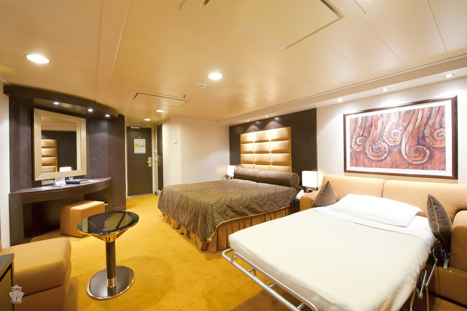 1637 kajút (vrátane 43 kajút pre invalidov - vnútroné, vonkajšie, balkónové) - 107 suite s balkónom/panoramatickým oknom (vrátane Royal, Deluxe, Family) 1 143 kajút s balkónom, 93 s oknom a 294 vnútorných. Všetky kajuty sú vybavené klimatizáciou, TV, minibarom, bezpečnostným trezorom, rádiom, telefónom, kúpeľňou s WC. K dispozícii je 24 hodinový kajutový servis.