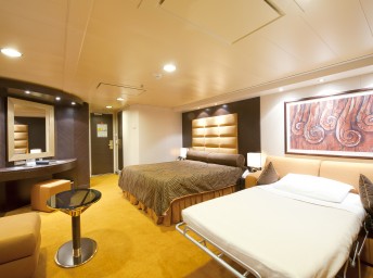 YC2 - Yacht Club Executive & Family Suite s oknom 45-53 m². Neotvárateľné panoramatické okná. 12. paluba. Cenový model Aurea. | 5 397 € 1 799 € za osobu | ||