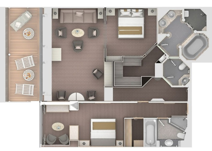 R1 - Royal Suite 1 105 m² (vrátane balkónu). 7. paluba vpredu. Max 3 osoby. 41 600 € 20 800 € za osobu