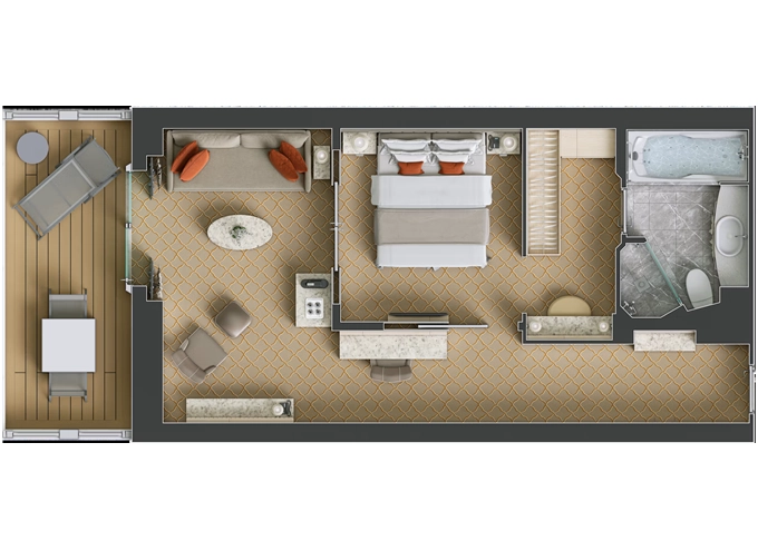 DX - Deluxe Veranda Suite 30 m² + balkón 6 m². 6,7,8. paluba - stred. Max 3 osoby. 22 200 € 22 200 € za osobu