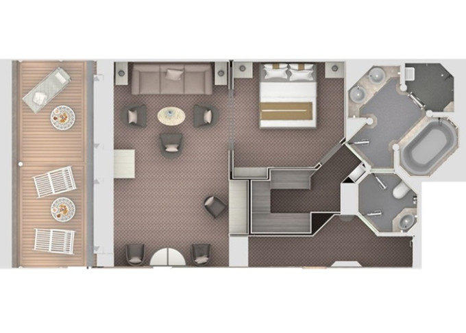 DX - Deluxe Veranda Suite 30 m² + balkón 6 m². 6,7,8. paluba - stred. Max 3 osoby. 23 600 € 23 600 € za osobu